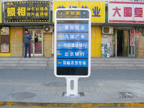 广告位规格:87*21,每个导向牌5个广告位(双面) 导向牌分布在门头沟地区主要路口,共58块. |